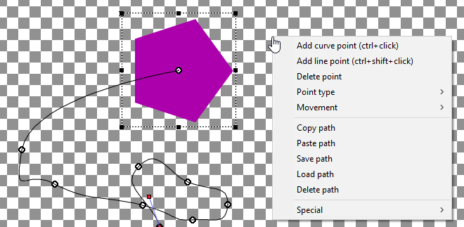 Los preajustes de ruta se crean abriendo el menú contextual de la ruta. Para ello, vaya a la pestaña Inicio y seleccione la herramienta Trayectoria. Después de crear una ruta, haga clic con el botón derecho del ratón en el área de edición y seleccione Guardar ruta. Cargue las rutas preestablecidas seleccionando Cargar ruta en el mismo menú. La extensión del archivo de una ruta preestablecida es .INNDSpath.