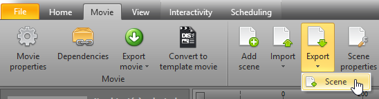Para crear tu propia escena preestablecida sólo tienes que crear tu escena tal y como te gustaría que apareciera. (Añade imágenes, textos, calendarios, etc.) Luego ve a Película > Exportar > Escena. Aparecerá un cuadro de diálogo para guardar. Te recomendamos que lo guardes en tu carpeta INNDSContent > Presets > Scenes. (Si no tienes esta carpeta, créala)